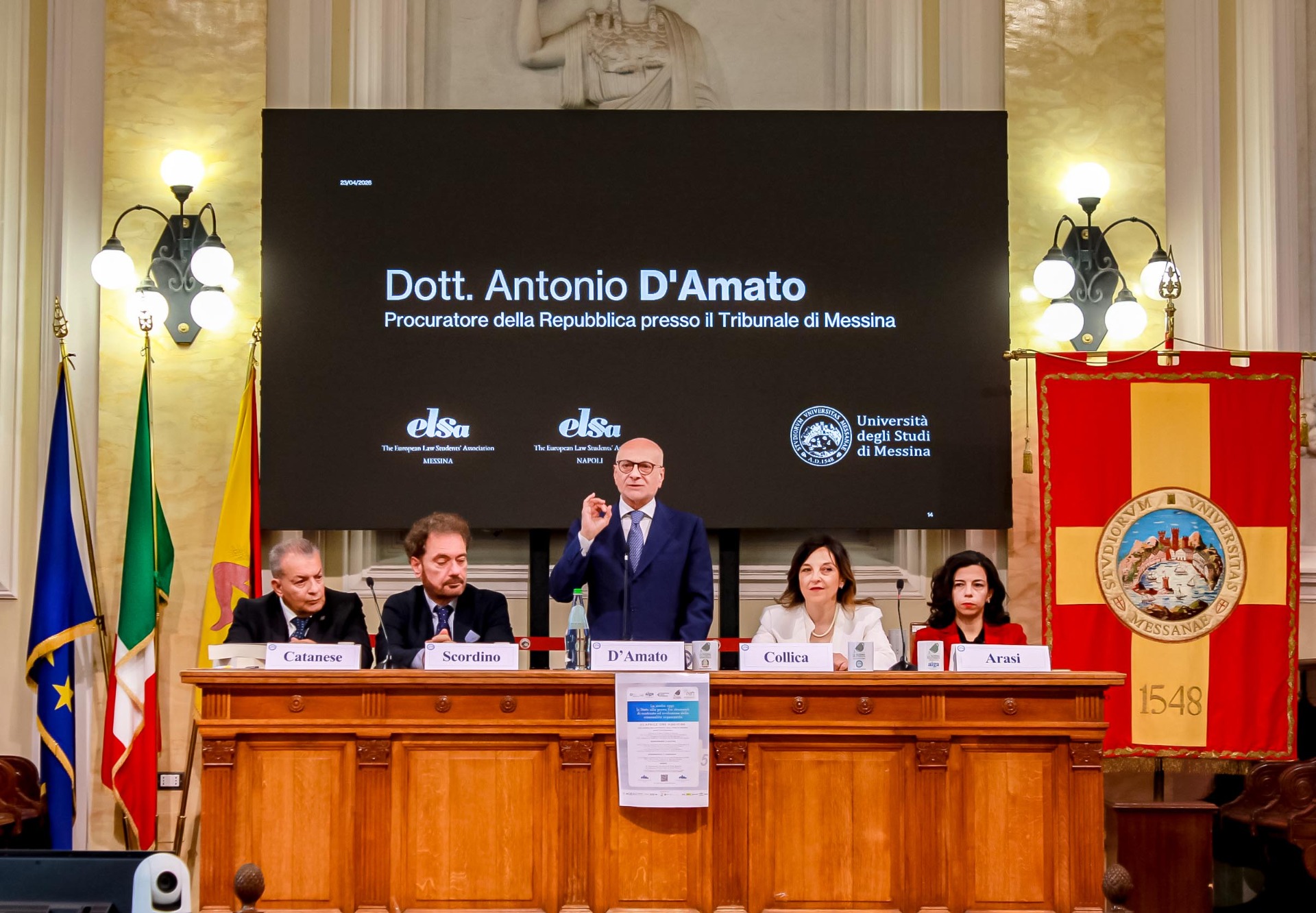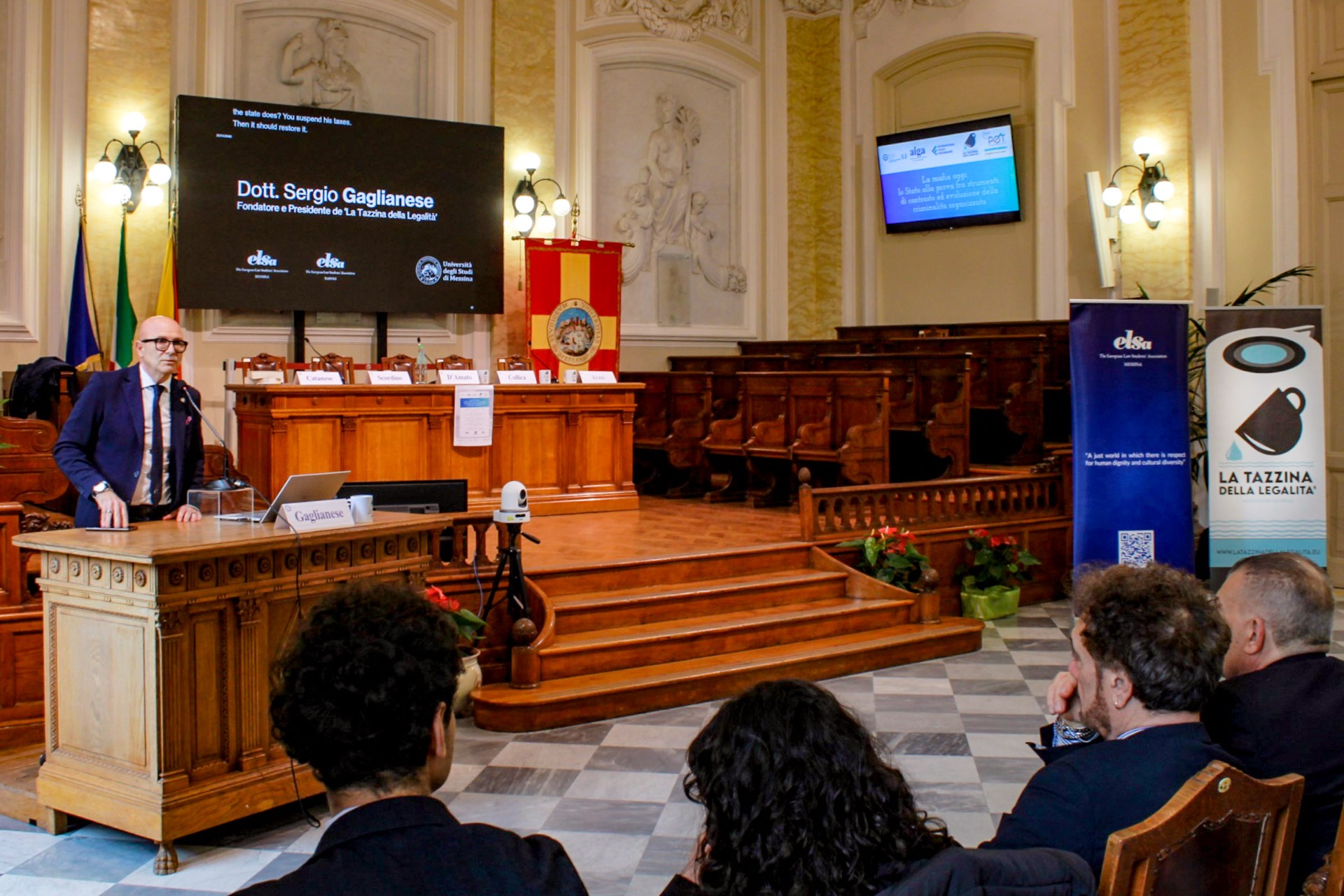 In data 23 aprile, si è svolto, in presenza delle massime autorità cittadine, presso l'Aula Magna del Rettorato dell'Università degli studi di Messina, un evento, organizzato da ELSA Messina, European Law School Association (organizzazione che riunisce studenti e giovani laureati in giurisprudenza di tutta Europa), dal titolo "La mafia oggi: lo Stato alla prova fra strumenti di contrasto ed evoluzione della criminalità organizzata".